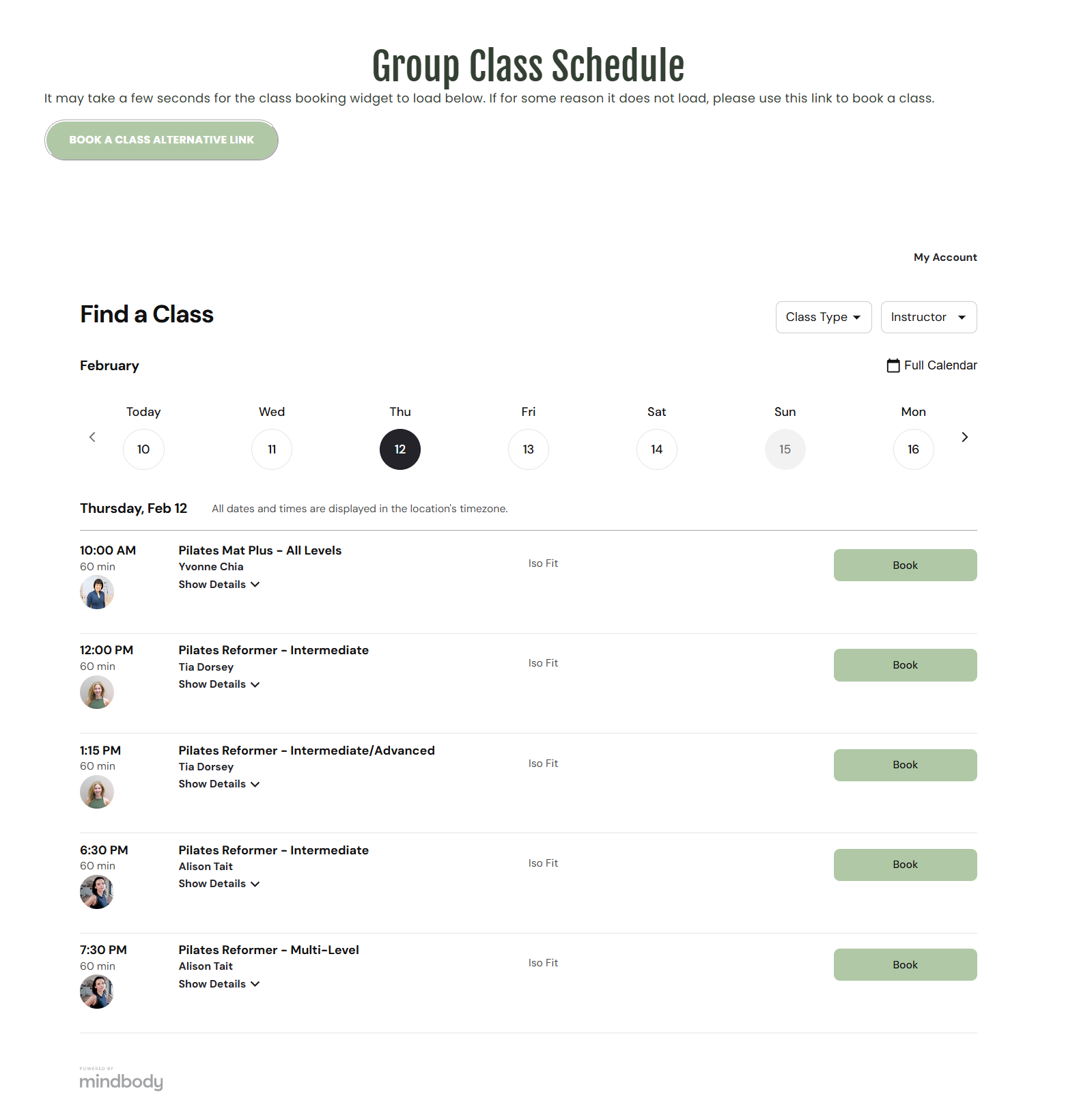 Website Schedule Widget – Browse and book directly from embedded schedule views on our website