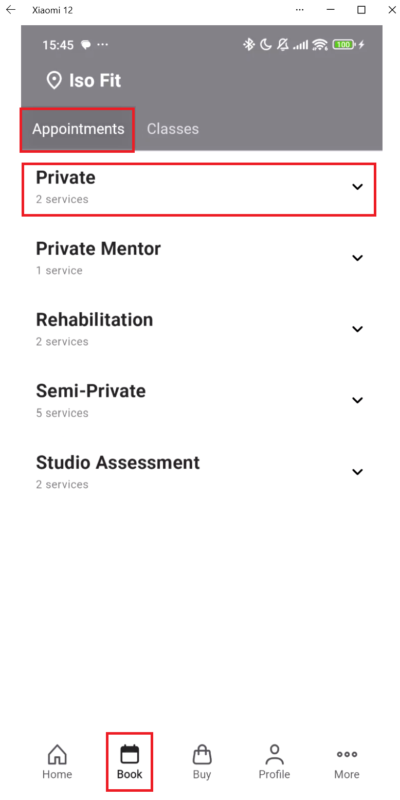 Step 4: How to book a Studio (Private/Semi Private) Session.